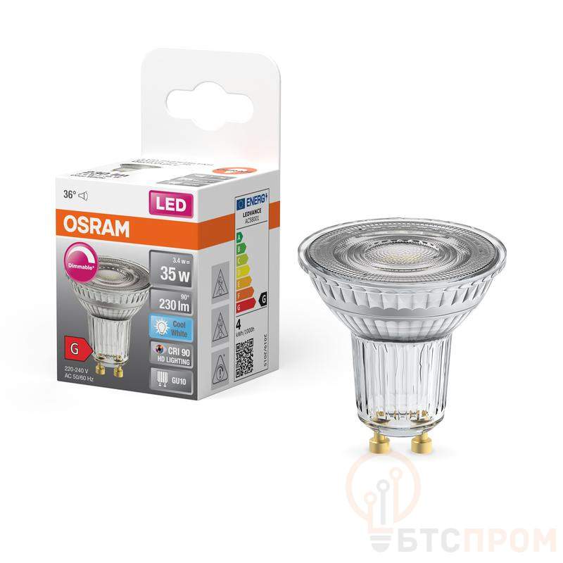 Лампа светодиодная диммируемая Superstar PAR16 3.4Вт 4000К тепл. бел. GU10 230лм прозр. стекло 220-240В (замена 35Вт) OSRAM 4058075797666