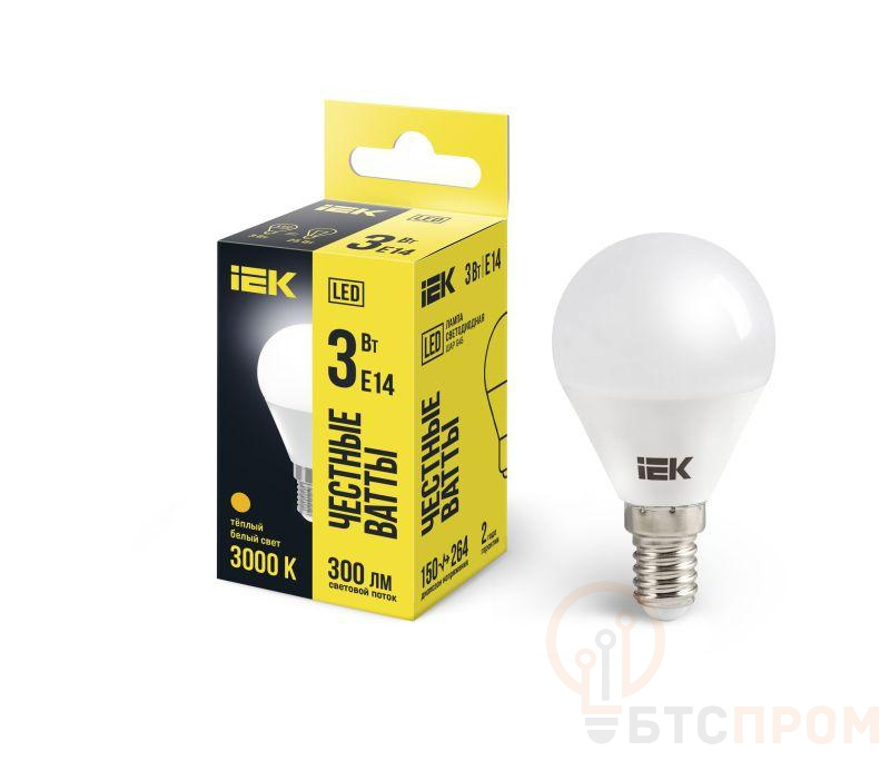 Лампа LED G45 шар 3Вт 230В 3000К E14 IEK предназначена для использования в осветительных приборах наружного и внутреннего освещения объектов промышленного, коммерческого и бытового назначения. Соответствует требованиям Технических регламентов Таможенного союза ТР ТС 004/2011, ТР ТС 020/2011, МЭК 62560, Постановления Правительства РФ от 10.11.2017 № 1356.