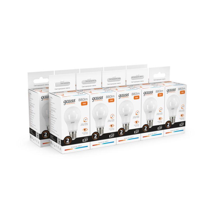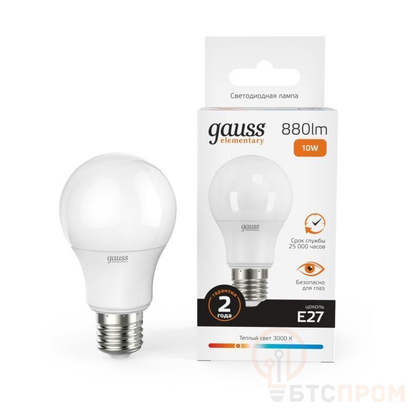 Лампа светодиодная LED Elementary Globe A60 10Вт E27 2700К Gauss 23210 – лампа с колбой вида "шар", желтого света, длиной 125 мм, диаметром 60 мм, с цоколем Е27, мощностью 10 Вт. Цветовая температура 2700 К.
