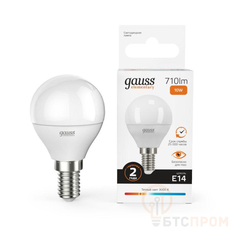 Лампа светодиодная Elementary 10Вт P45 шар 3000К тепл. бел. E14 710лм GAUSS 53110 фото в каталоге от BTSprom.by