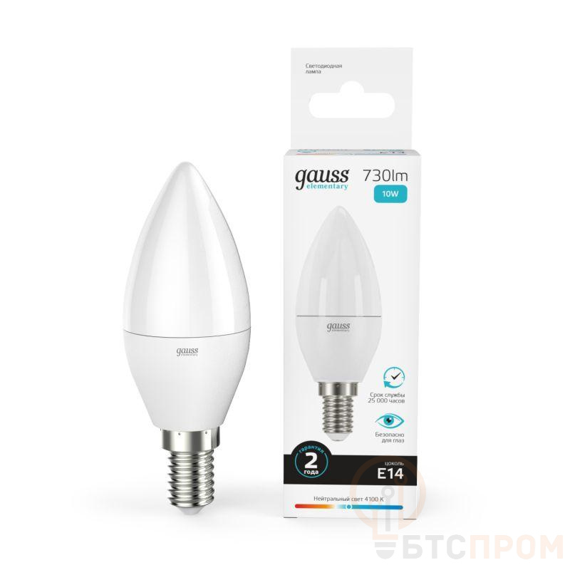 Лампа светодиодная Elementary 10Вт свеча 4100К нейтр. бел. E14 730лм GAUSS 33120 фото в каталоге от BTSprom.by