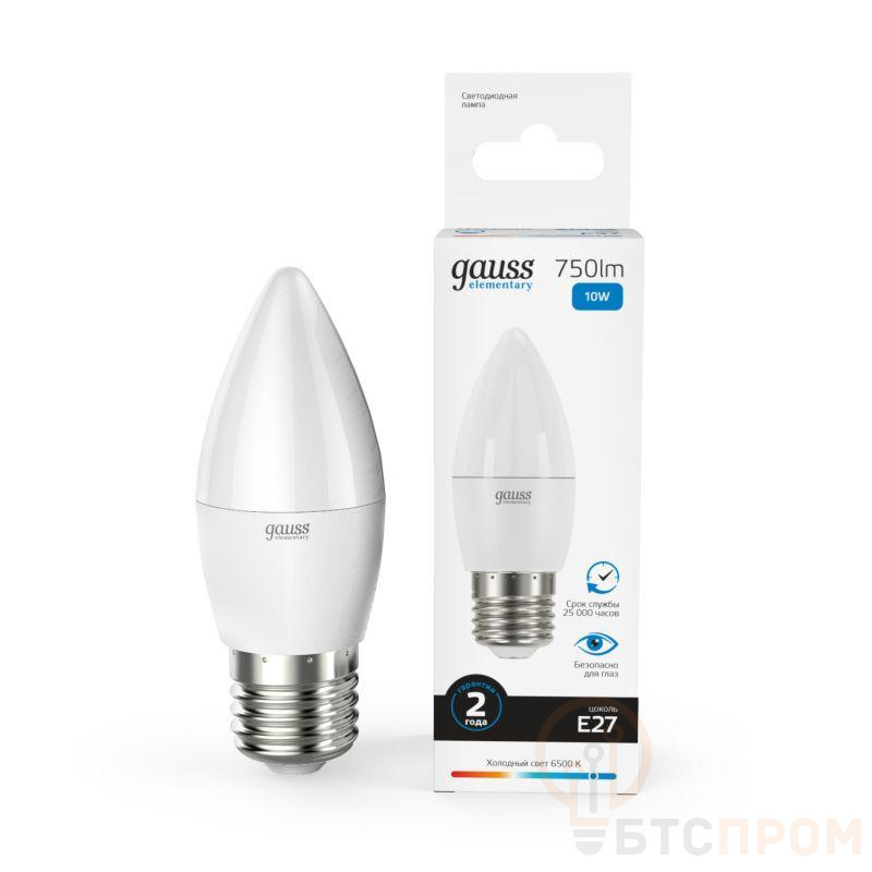 Лампа светодиодная Elementary 10Вт свеча 6500К холод. бел. E27 750лм GAUSS 30230 фото в каталоге от BTSprom.by