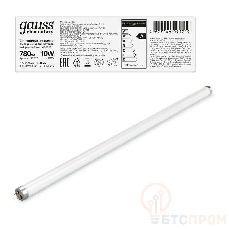 Светодиодная лампа Elementary GAUSS 93020 — современная энергоэффективная замена люминесцентным лампам-трубкам. Модель мощностью 10 Вт создает комфортный нейтральный белый свет 4000 К, что соответствует естественному дневному освещению. Световой поток 780 лм обеспечивает равномерную яркую подсветку без мерцания.