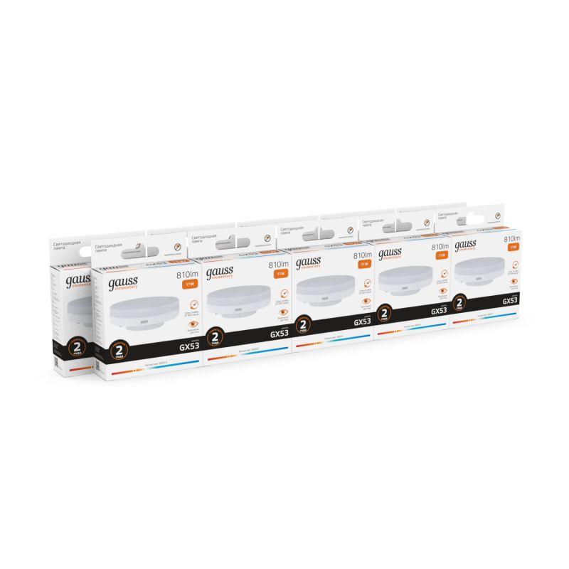 Лампа светодиодная Elementary 11Вт таблетка 3000К тепл. бел. GX53 810лм GAUSS 83811 фото в каталоге от BTSprom.by