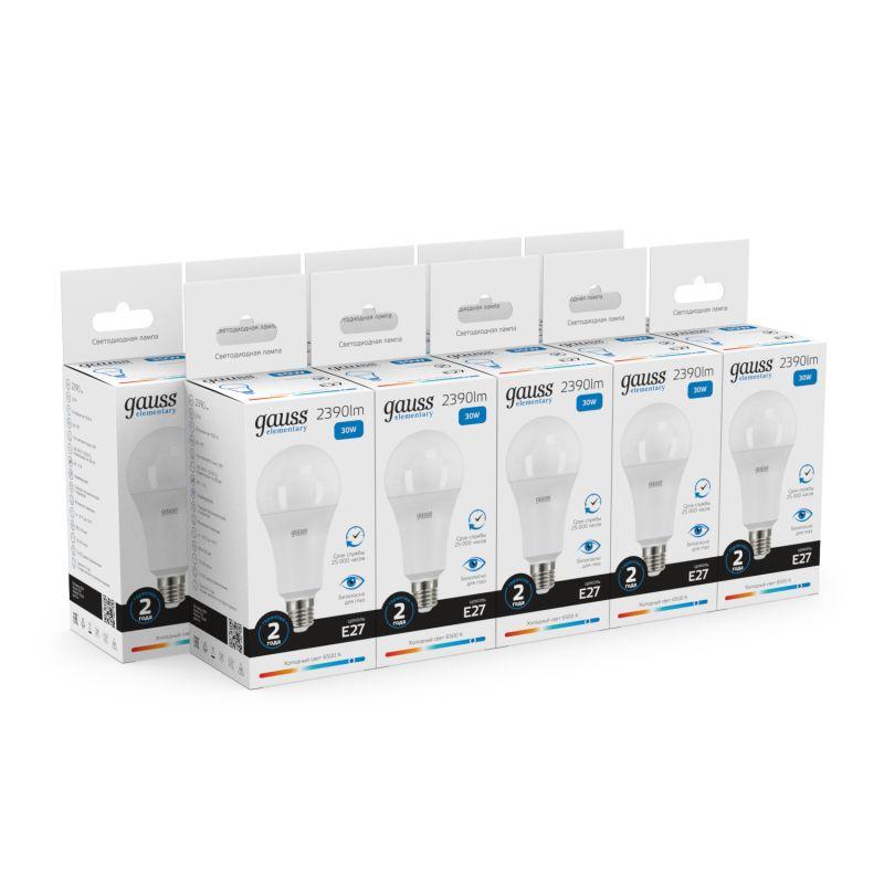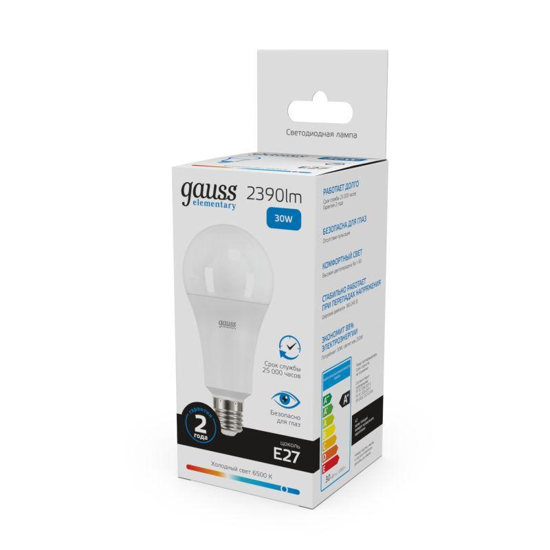 Лампа светодиодная Elementary 30Вт A70 грушевидная 6500К холод. бел. E27 2390лм GAUSS 73239 фото в каталоге от BTSprom.by