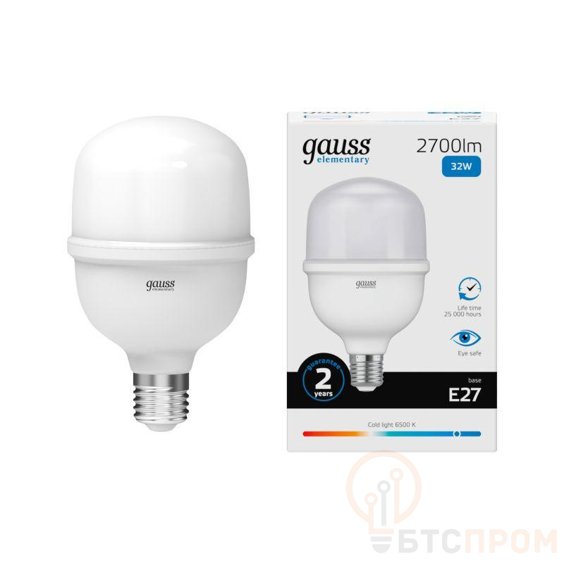 –Лампа светодиодная Elementary 32Вт T100 цилиндр 6500К холод. бел. E27 2700лм GAUSS 63233