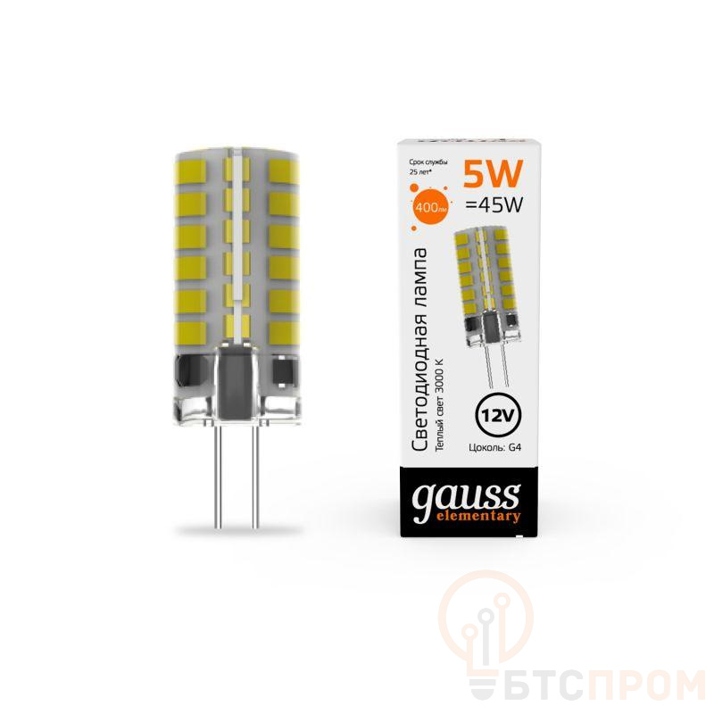 Лампа светодиодная Elementary 5Вт капсульная 3000К тепл. бел. G4 400лм DC 12В GAUSS 18715 фото в каталоге от BTSprom.by