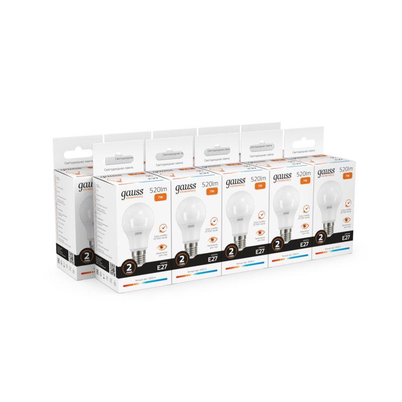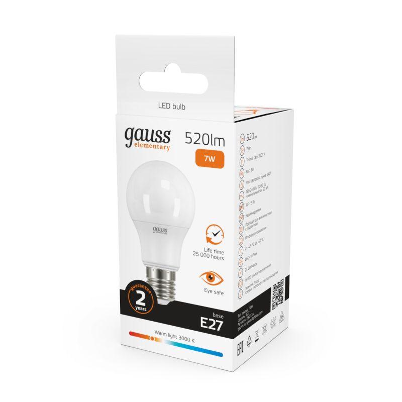 Лампа светодиодная LED Elementary Globe A60 7Вт E27 2700К Gauss 23217A – лампа с колбой вида "шар", желтого света, длиной 110 мм, диаметром 60 мм, с цоколем Е27, мощностью 7 Вт. Цветовая температура 2700 К.