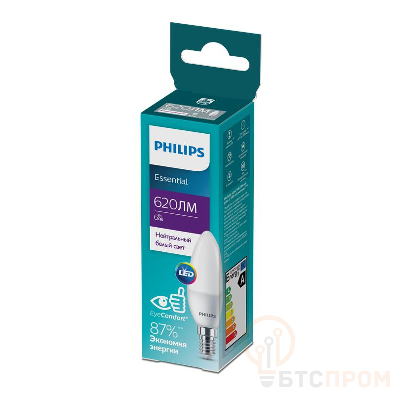 Светодиодная лампа ESS LEDCandle от PHILIPS мощностью 6 Вт создает уютную атмосферу и обеспечивает качественное освещение. Световой поток 620 лм оптимален для небольших помещений. Форма свечи B35 с резьбой E14 идеально подходит для бра, небольших светильников и декоративной подсветки.
