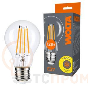 Светодиодная лампа WOLTA WF-A60-12W3KE27 в ретро-стиле сочетает современную энергоэффективность с классическим дизайном. Лампа выполнена в форме «Груша» (A60) из прозрачного стекла, что открывает вид на уютную нить накаливания (Filament). Она создает теплый комфортный свет с цветовой температурой 3000К, аналогичный свету традиционных ламп накаливания.