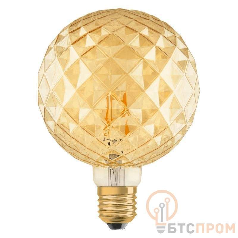 Лампа светодиодная филаментная OSRAM Vintage 1906 LED CL PINECONE FIL GOLD 40 non-dim 4,5W/825 E27, 470 лм, 4,5Вт (замена 40Вт), 2500К (теплый белый свет). Цоколь E27, колба Deco. Исполнение колбы золотистое, стекло. Напряжение питания 220-240В. Товар сертифицирован.