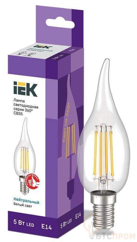 Лампа светодиодная филаментная 360° 5Вт CB35 свеча на ветру 4000К нейтр. бел. E14 230В IEK LLF-CB35-5-230-40-E14-CL
