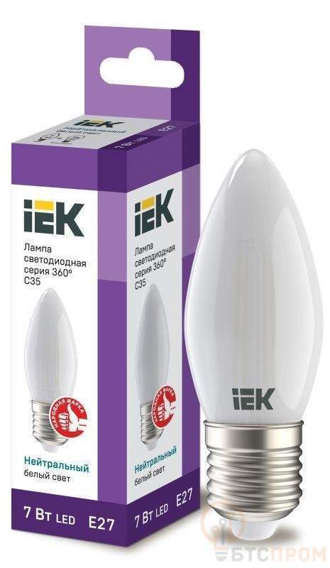 Лампа светодиодная филаментная 360° 7Вт C35 свеча матовая 4000К нейтр. бел. E27 230В IEK LLF-C35-7-230-40-E27-FR