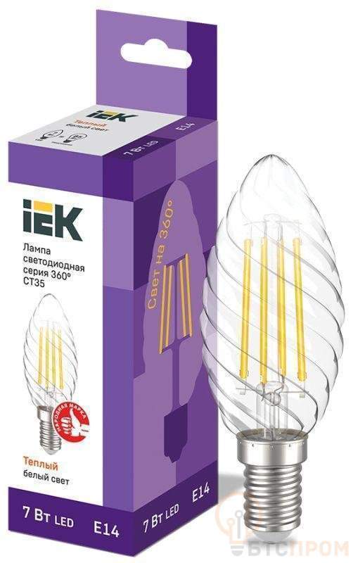 Лампа светодиодная филаментная 360° 7Вт CT35 свеча витая 3000К E14 230В IEK LLF-CT35-7-230-30-E14-CL