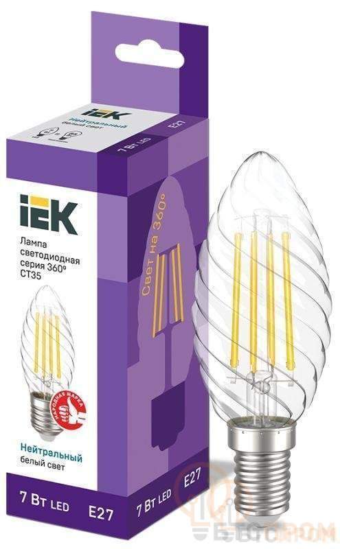 Лампа светодиодная филаментная 360° 7Вт CT35 свеча витая 4000К нейтр. бел. E27 230В IEK LLF-CT35-7-230-40-E27-CL