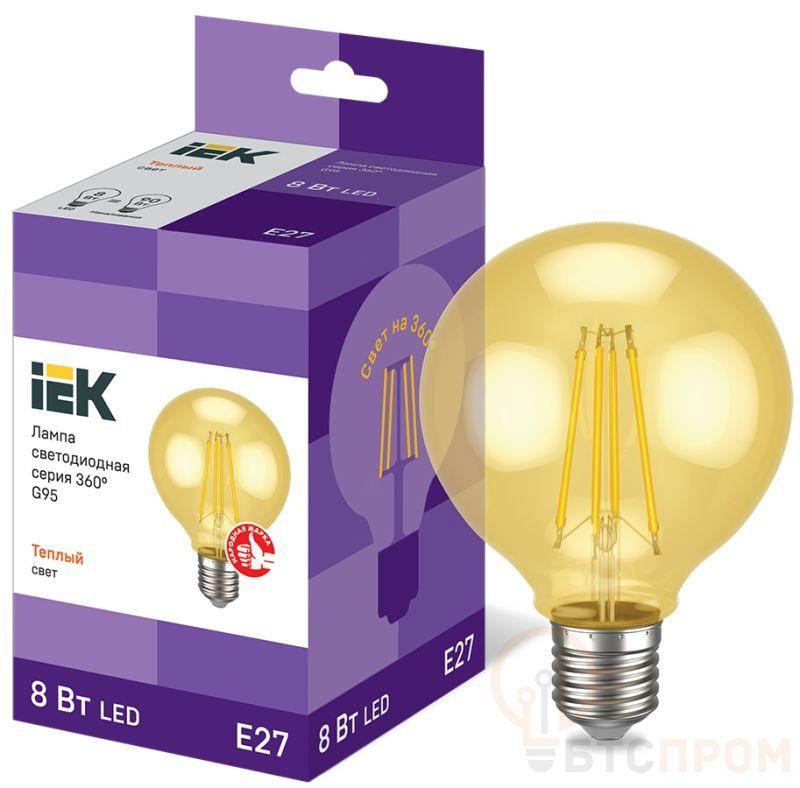 Лампа LED G95 шар золото 8Вт 230В 2700К E27 серия 360° IEK с нитевидным светодиодом (филаментная нить) является одним из самых эффективных источников света. Главное отличие от обычных светодиодных ламп – угол рассеивания света до 360° (дополнительный комфорт для глаз). Лампа применяется в осветительных приборах бытового назначения. Представлены в 3 вариантах: с прозрачной, золоченой и матовой колбами. Соответствуют требованиям Технических регламентов Таможенного союза ТР ТС 004/2011, ТР ТС 020/2011, МЭК 62560 и постановления Правительства РФ от 10.11.2017 № 1356.