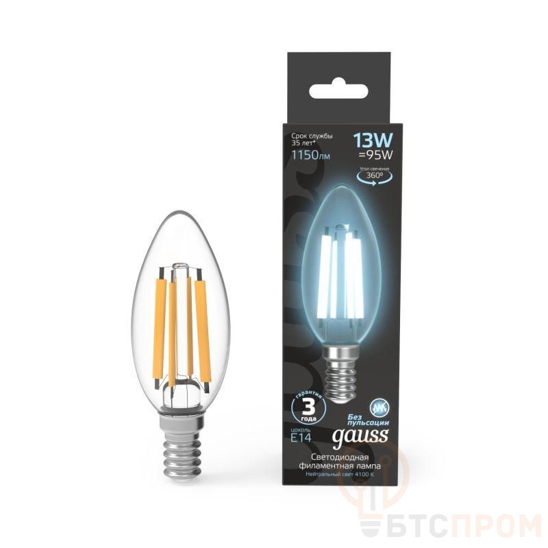 Лампа светодиодная филаментная Black Filament 13Вт свеча 4100К нейтр. бел. E14 1150лм GAUSS 103801213