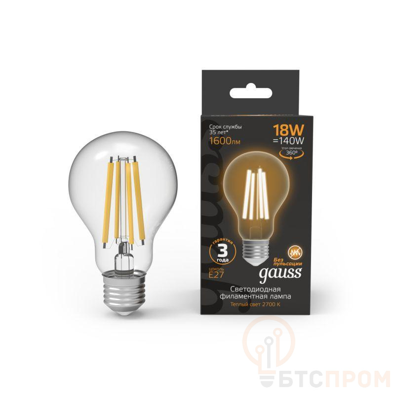 Светодиодные филаментные лампы GAUSS - это новейшие технологии в светотехнике. Лампы имеют привычный вид классических ламп накаливания, освещают пространство на 360о и дают больше света по сравнению с обычными светодиодными лампами за счет прозрачной колбы. Идеально подходят для хрустальных люстр и открытых светильников, а также для реализации дизайнерских решений, где важен вид классических ламп накаливания.