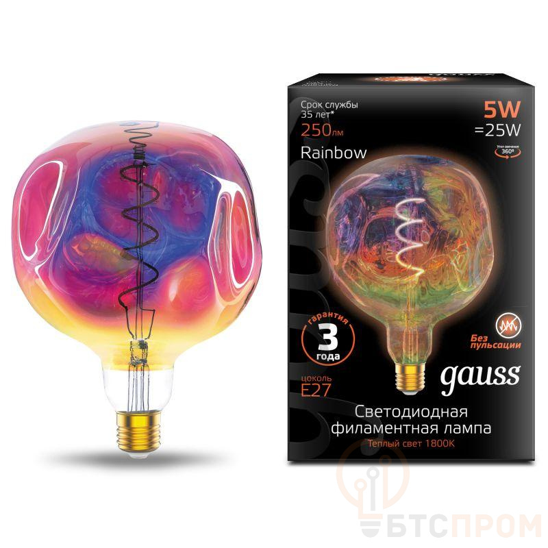 Лампа светодиодная филаментная Black Filament 5Вт G150 шар 1800К тепл. бел. E27 250лм GAUSS 1007802103