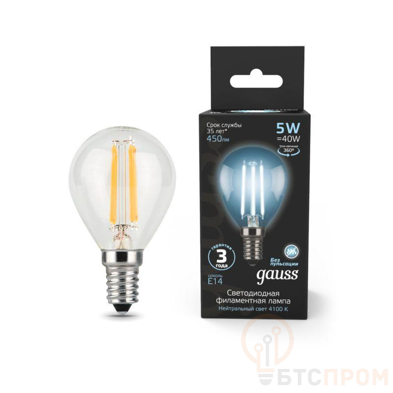 Лампа светодиодная филаментная Black Filament 5Вт P45 шар 4100К нейтр. бел. E14 450лм GAUSS 105801205