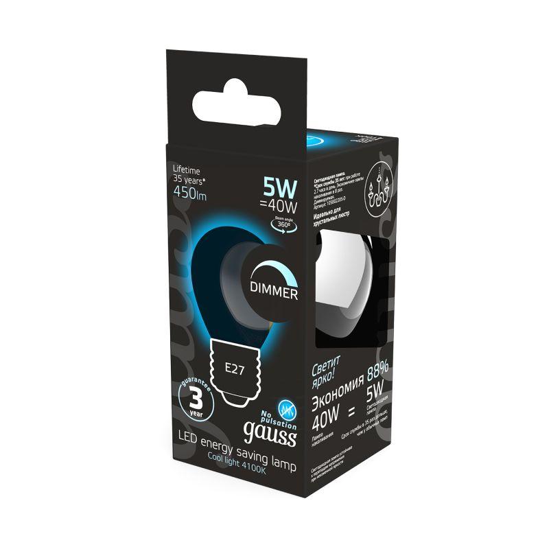 Лампа светодиодная филаментная Black Filament 5Вт P45 шар 4100К нейтр. бел. E27 450лм диммир. GAUSS 105802205-D