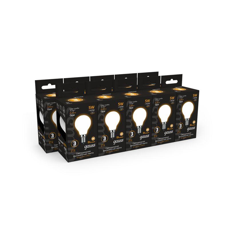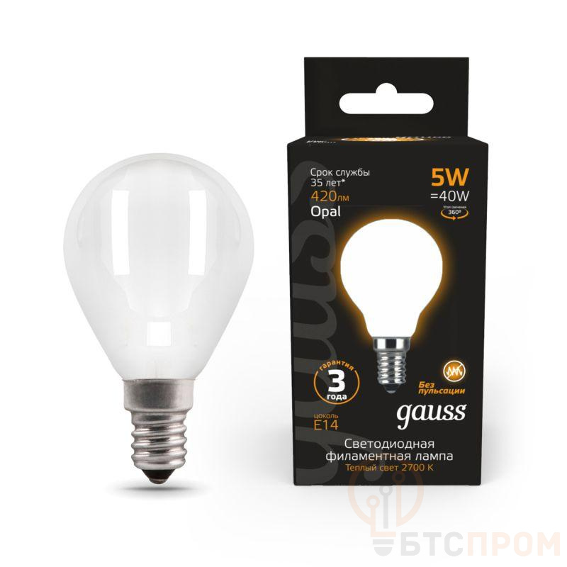 Лампа светодиодная филаментная Black Filament 5Вт P45 шар матовая 2700К тепл. бел. E14 420лм GAUSS 105201105