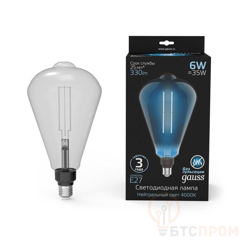 Лампа светодиодная филаментная Black Filament 6Вт ST164 тонированная 4000К нейтр. бел. E27 330лм GAUSS 157802205