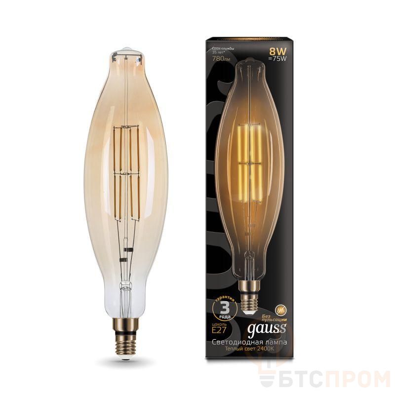 Лампа светодиодная филаментная Black Filament 6Вт T120 цилиндр золотая 2400К тепл. бел. E27 780лм GAUSS 155802008
