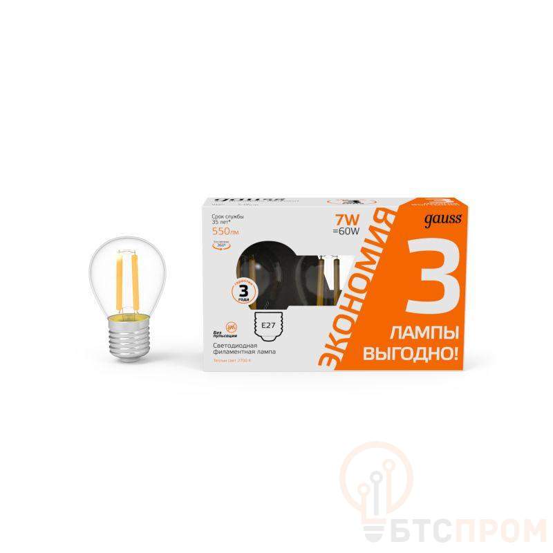 Лампа светодиодная филаментная Black Filament 7Вт P45 шар 2700К тепл. бел. E14 550лм промо (уп.3шт) GAUSS 105902107T