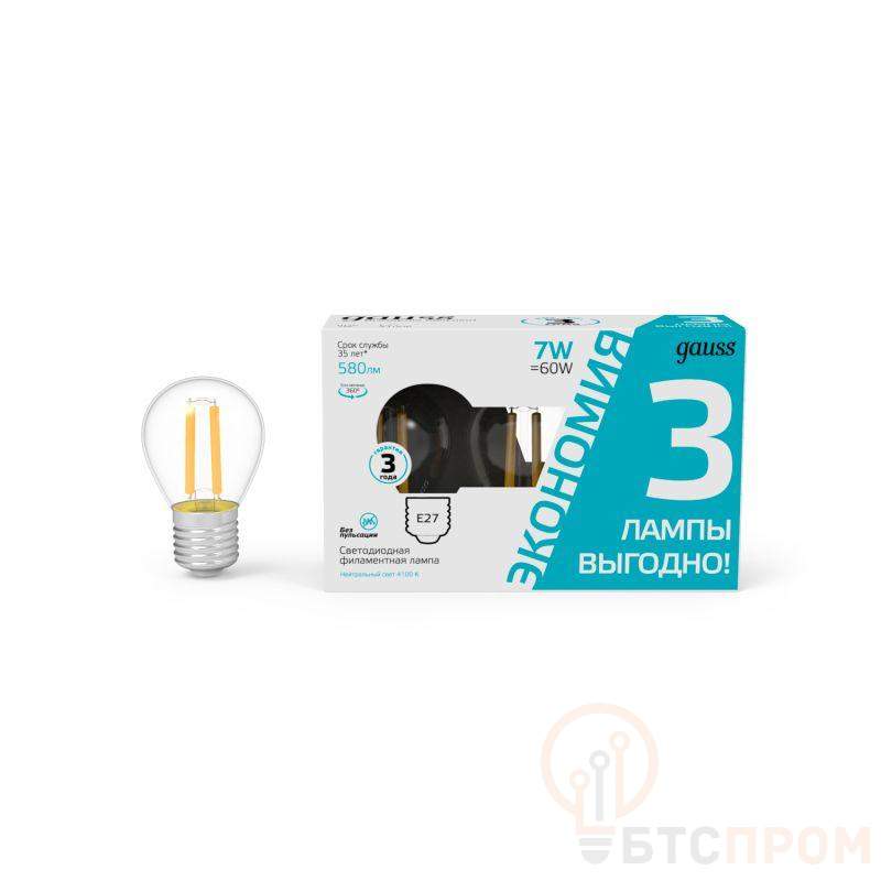 Лампа светодиодная филаментная Black Filament 7Вт P45 шар 4100К нейтр. бел. E27 580лм промо (уп.3шт) GAUSS 105902207T