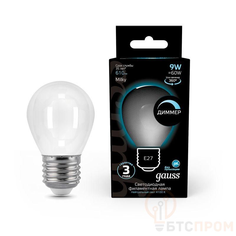 Лампа светодиодная филаментная Black Filament 9Вт P45 шар матовая 4100К нейтр. бел. E27 610лм диммир. GAUSS 105202209-D