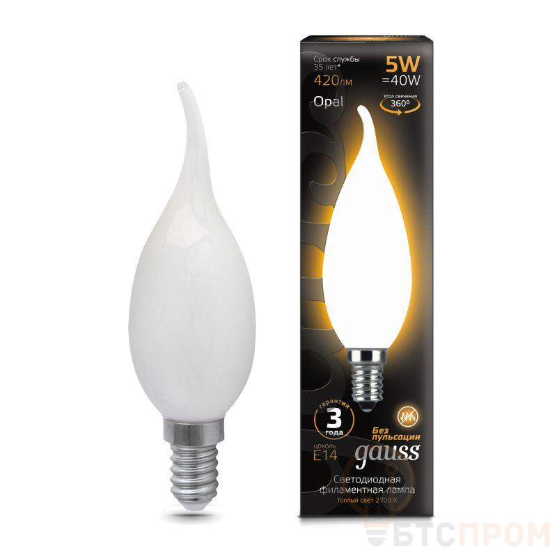 Лампа светодиодная филаментная Black Filament 5Вт свеча на ветру матовая 2700К тепл. бел. E14 420лм GAUSS 104201105