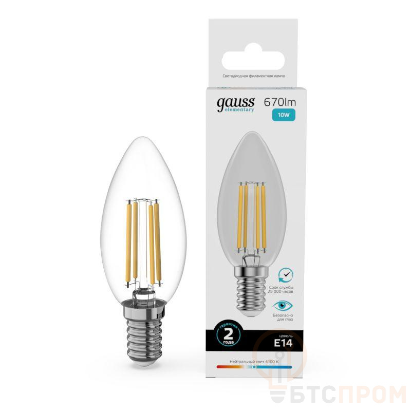 Лампа светодиодная филаментная Filament Elementary 10Вт свеча 4100К Е14 670лм GAUSS 32120 фото в каталоге от BTSprom.by