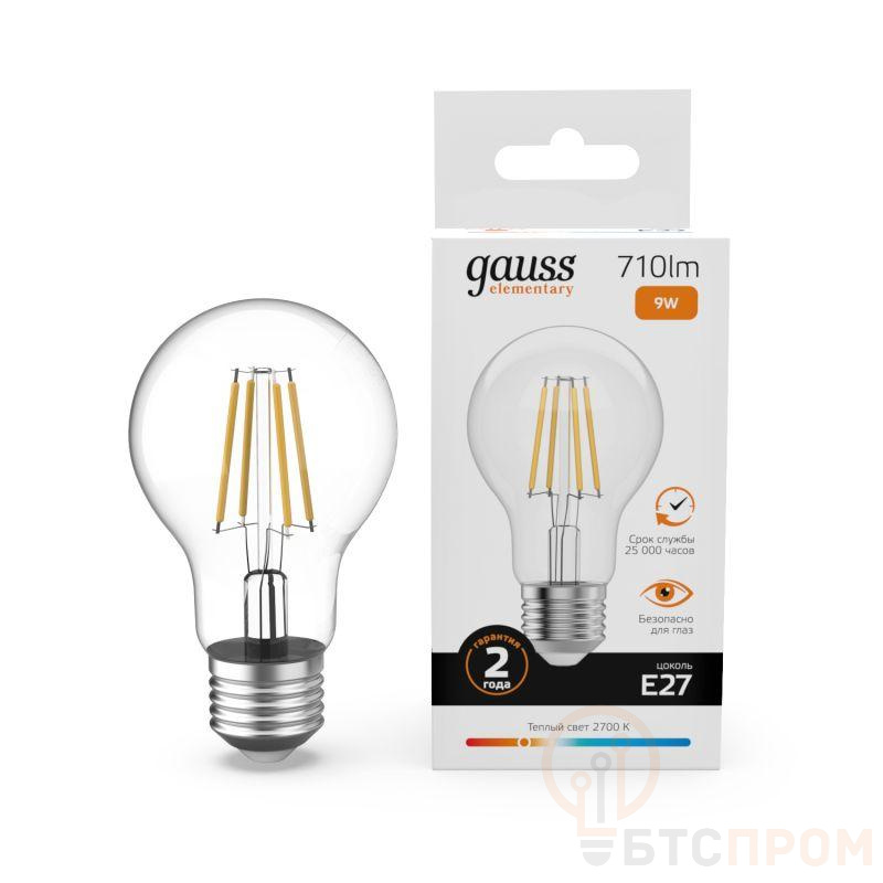 Лампа светодиодная филаментная Filament Elementary А60 9Вт 2700К Е27 710лм GAUSS 22219 фото в каталоге от BTSprom.by