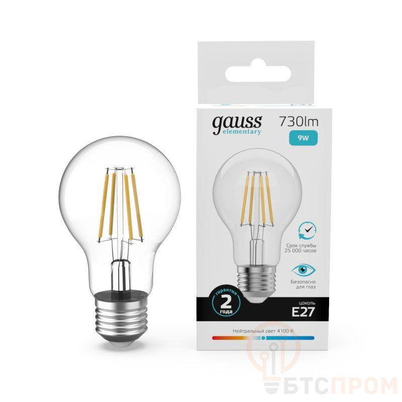Светодиодная филаментная лампа GAUSS Elementary А60 сочетает в себе ретро-дизайн и современные энергосберегающие технологии. Модель мощностью 9 Вт обеспечивает комфортный нейтрально-белый свет с цветовой температурой 4100K, что соответствует естественному дневному освещению.