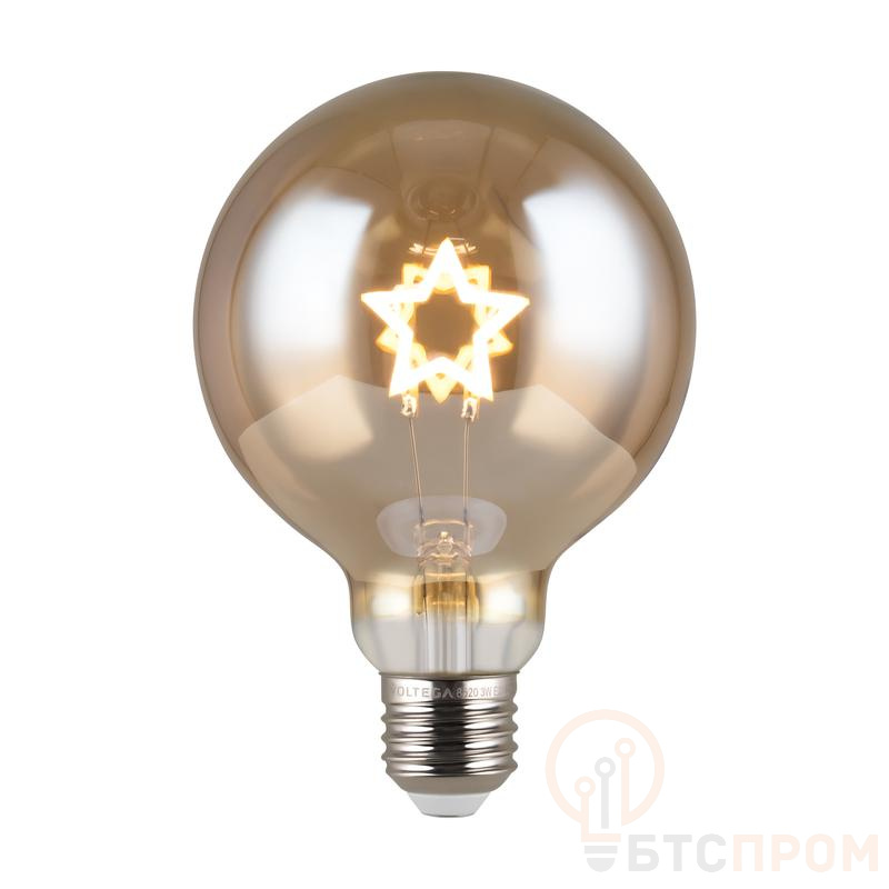 Филаментная лампа Voltega Loft 271 G125 8520 мощностью 3 Вт. Теплый белый свет (2700К). Цоколь E27. Напряжение 230В. Лампа формы G125 (шар) малой мощности для декора.