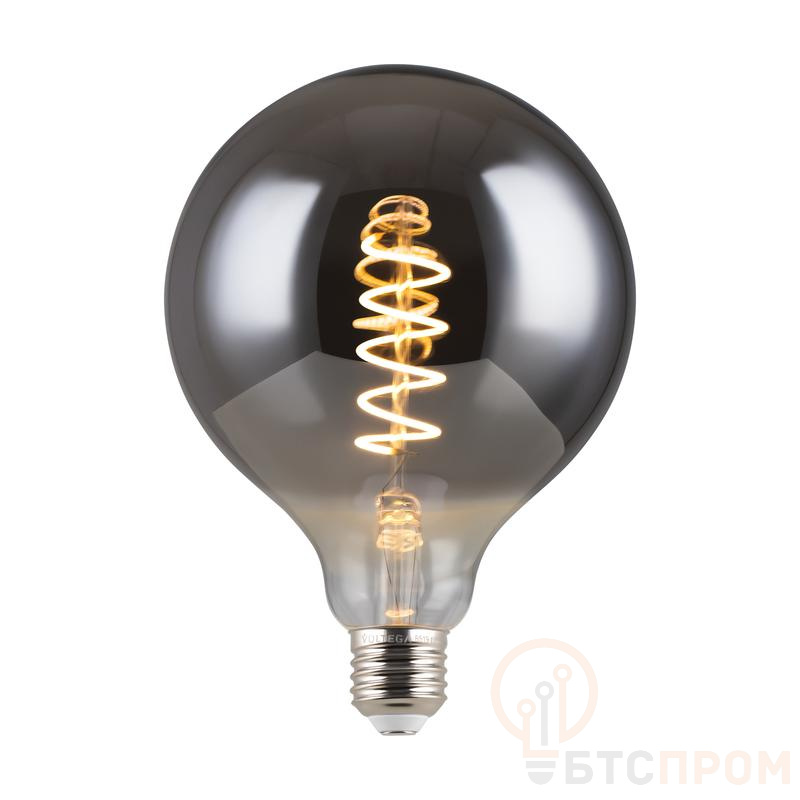 Филаментная лампа Voltega Loft 271 G125 8519 мощностью 4 Вт. Теплый белый свет (3000К). Цоколь E27. Напряжение 230В. Шаровая лампа с нейтрально-теплым светом (3000К).
