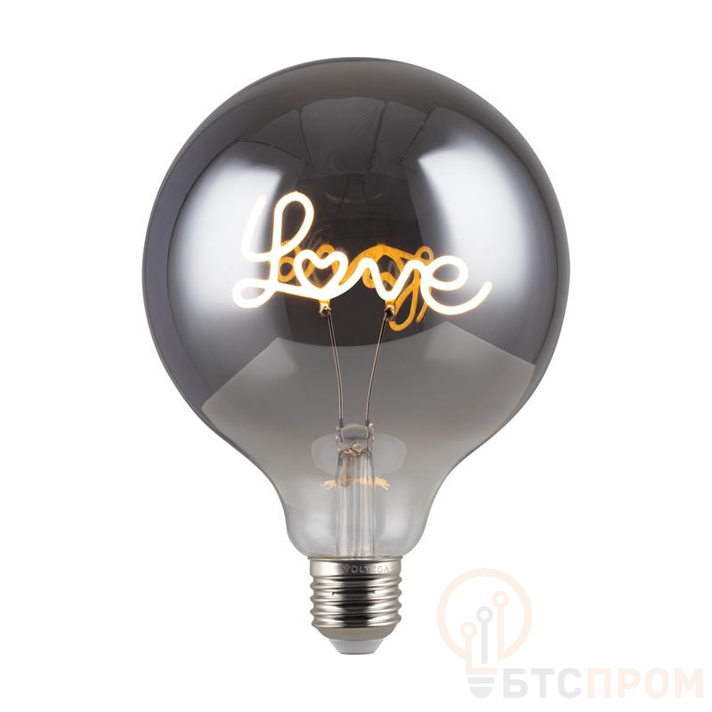 Филаментная лампа Voltega Loft 271 G125 8523 мощностью 4 Вт. Теплый белый свет (3000К). Цоколь E27. Напряжение 230В. Дополнительная модель с температурой 3000К.