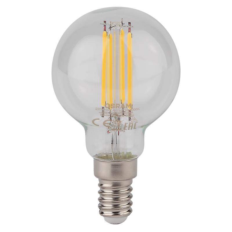 Лампа светодиодная филаментная диммируеммая OSRAM LSCLP60D 5W/840 230V FIL E14 10X1RUOSRAM, 520 лм, 5Вт (замена 60Вт), 4000К (нейтральный белый свет). Цоколь E14, колба P. Исполнение колбы прозрачное, стекло. Напряжение питания 220-240В. Товар сертифицирован.