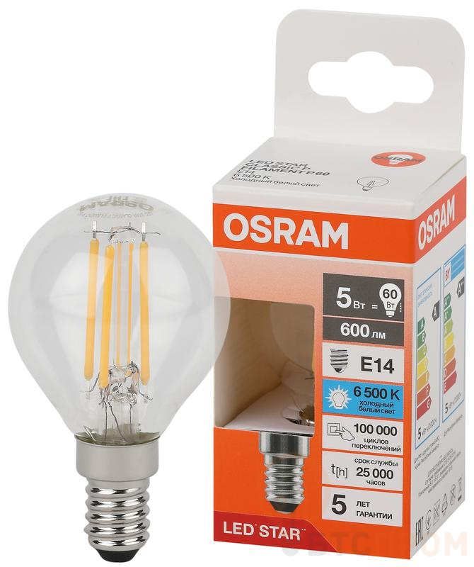Лампа светодиодная филаментная LSCLP60 5W/865 230VFILCL 5Вт 6500К холод. бел. E14 600лм P угол пучка 300град. 220-240В (замена 60Вт) прозр. стекло OSRAM 4058075688223