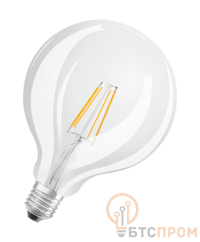 Лампа светодиодная филаментная PARATHOM CL GLOBE125 FIL 40 non-dim 4W/827 4Вт 2700К тепл. бел. E27 470лм G124 угол пучка 300град. 220-240В (замена 40Вт) прозр. стекло OSRAM 4058075591455