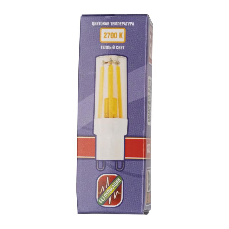Филаментная лампа JazzWay PLED-G9 PRO 5062610 с цоколем G9. Мощность 6 Вт, световой поток 480 лм. Теплый белый свет (2700К). Компактные размеры (d16.5х55мм). Напряжение 230В. Прямая замена галогенных ламп G9 в люстрах, бра, декоративных светильниках.