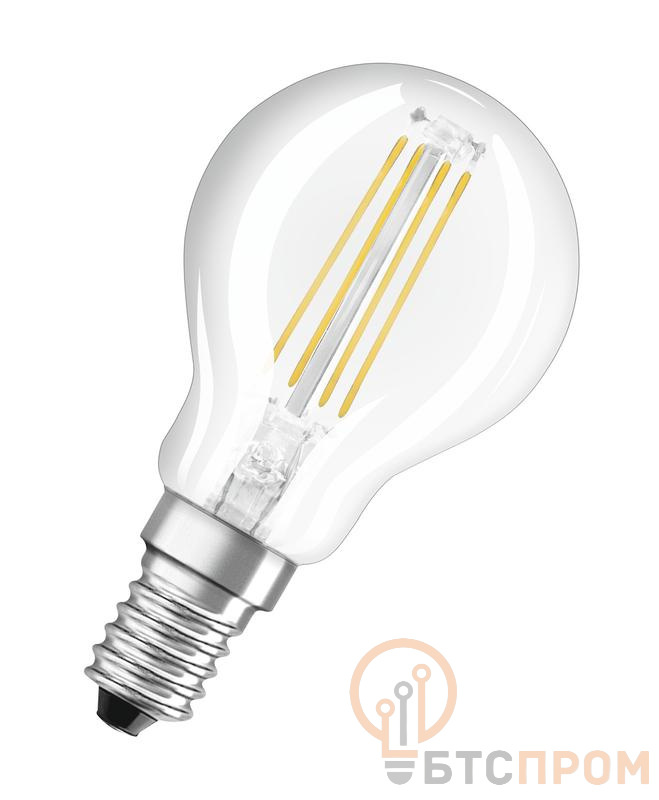 Лампа светодиодная филаментная Retrofit 5Вт P прозрачная 4000К нейтр. бел. E14 470лм 220-240В угол пучка 320град. диммир. (замена 40Вт) OSRAM 4058075434868