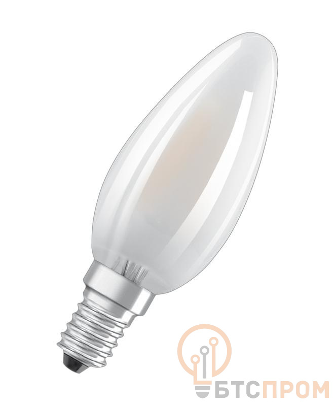 Филаментная лампа OSRAM Retrofit B 4058075436503 мощностью 4 Вт. Световой поток 470 лм (замена 40 Вт). Теплый белый свет (2700К). Лампа с матовой колбой. Угол пучка 300 градусов. Цоколь E14. Напряжение 220-240В. Стандартная лампа-свеча с матовым покрытием.