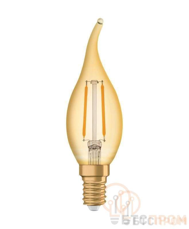 Лампа светодиодная филаментная 1906LCBA22 2,5W/824230VFILGDE1410X1, 220лм, 2,5Вт (замена 22Вт), 2400К (теплый белый свет). Цоколь E14, колба BA. Исполнение колбы золотистое, стекло. Напряжение питания 220-240В. Товар сертифицирован.