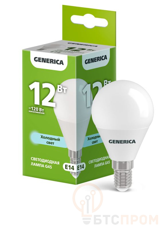 Светодиодная лампа GENERICA LL-G45-12-230-65-E14-G — современное энергоэффективное решение для домашнего и коммерческого освещения. Лампа выполнена в классической форме шара G45 диаметром 45 мм, что делает ее идеальным выбором для декоративных светильников, люстр и бра с открытыми плафонами.
