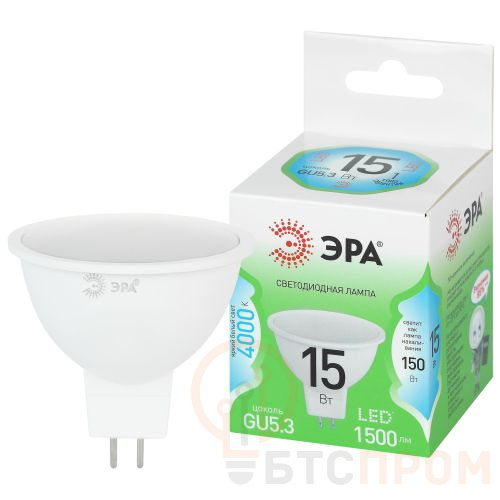 Лампа светодиодная GREEN LINE LED MR16-15W-840-GU5.3 GL 15Вт софит 4000К яркий бел. свет GU5.3 220-240В Эра Б0070073
