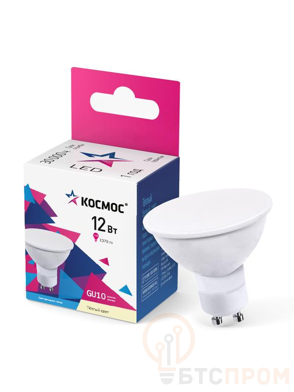 Светодиодная лампа КОСМОС LkecLED12wGU10C30. Цоколь GU10, 12Вт. Теплый белый свет 3000K. Напряжение 174-265В. Точечное освещение для акцентной подсветки. Широкий диапазон рабочих напряжений обеспечивает стабильную работу.