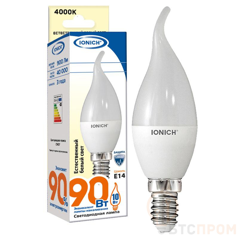 Лампа светодиодная ILED-SMD2835-CW37-10-900-220-4-E14 10Вт свеча на ветру 4000К нейтр. бел. E14 900лм 230-240В IONICH 1553