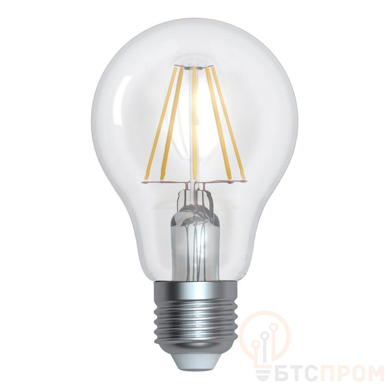 Лампа выполнена в классическом формате А60 с прозрачным корпусом, что позволяет использовать ее в открытых светильниках для создания стильного интерьера. Стандартный цоколь E27 обеспечивает совместимость с большинством бытовых светильников и люстр.